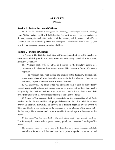 deemed necessary to conduct the activities of the chamber, and the treasurer. All officers